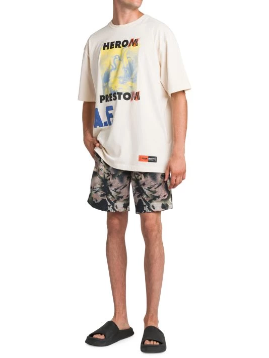 A signature logo graphic adorns the front of this printed cotton tee, cut with a relaxed fit.