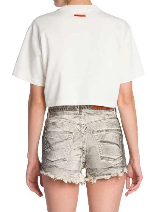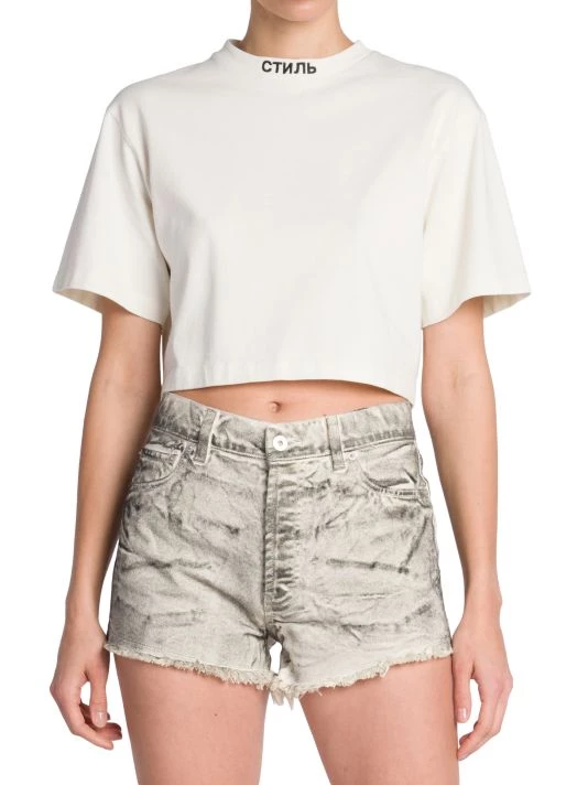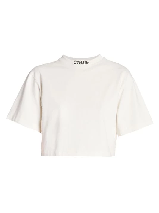 Cut in a cropped silhouette, Heron Preston’s boxy T-shirt is elevated by contrast branding at the crewneck.