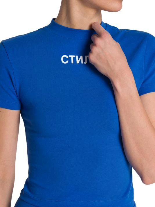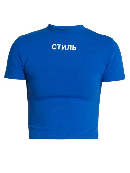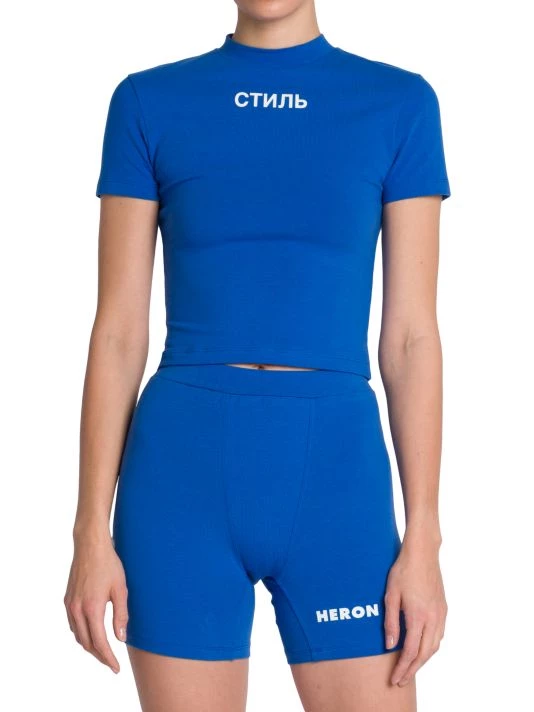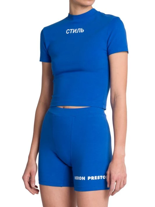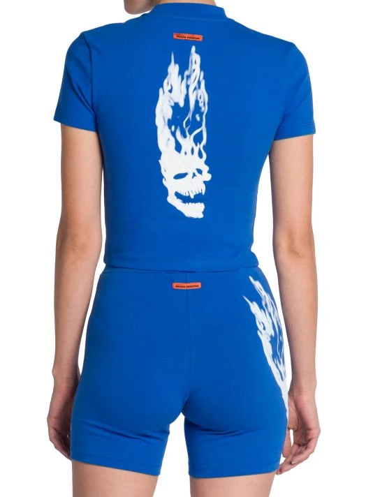 Cut in a cropped silhouette, Heron Preston’s mock turtleneck top features branding at the chest and a flaming skull graphic at the back.
