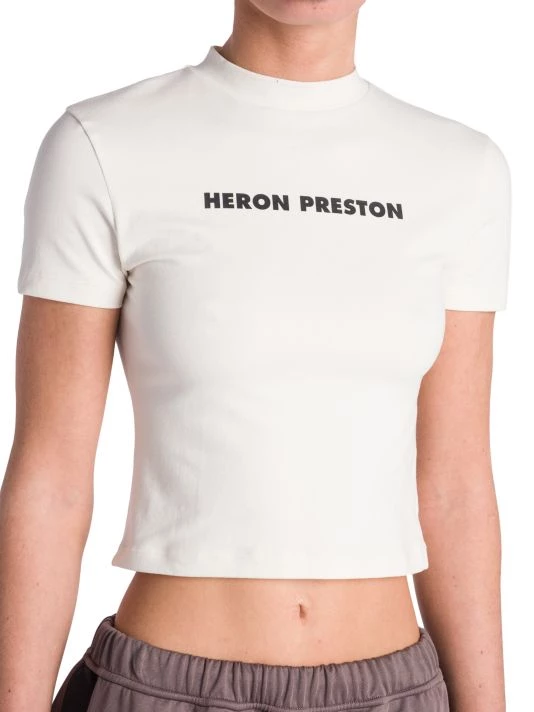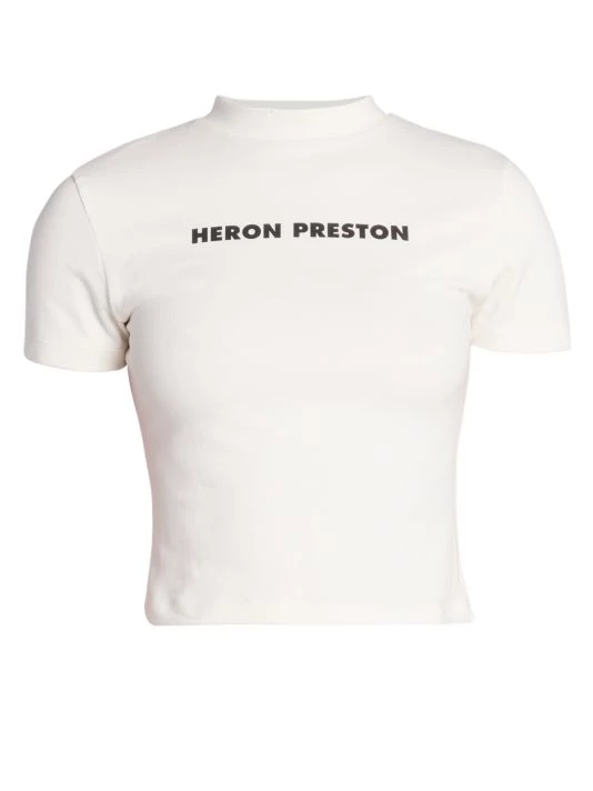 Cut in a cropped silhouette, Heron Preston’s formfitting T-shirt is defined by a contrast logo at the chest.