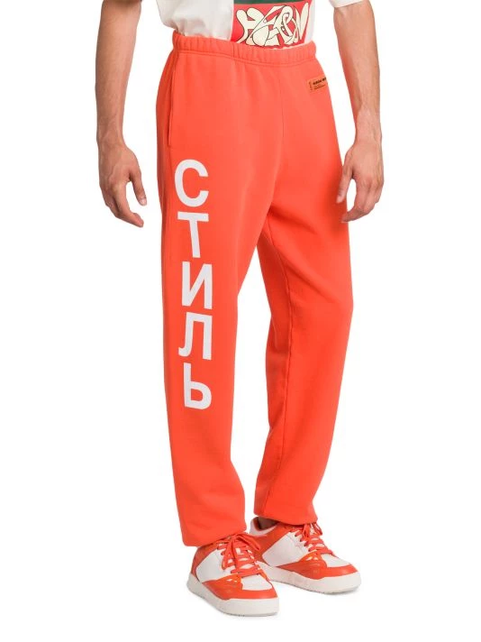 Graphic signature lettering adorns the leg of these relaxed, tapered-fit sweatpants.