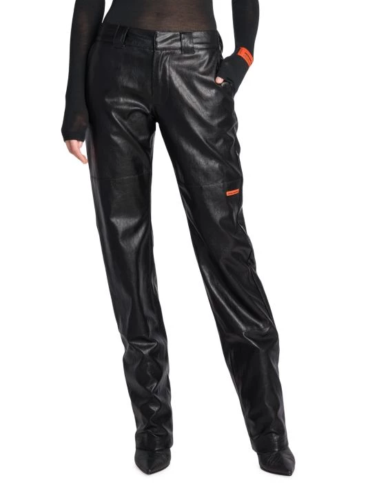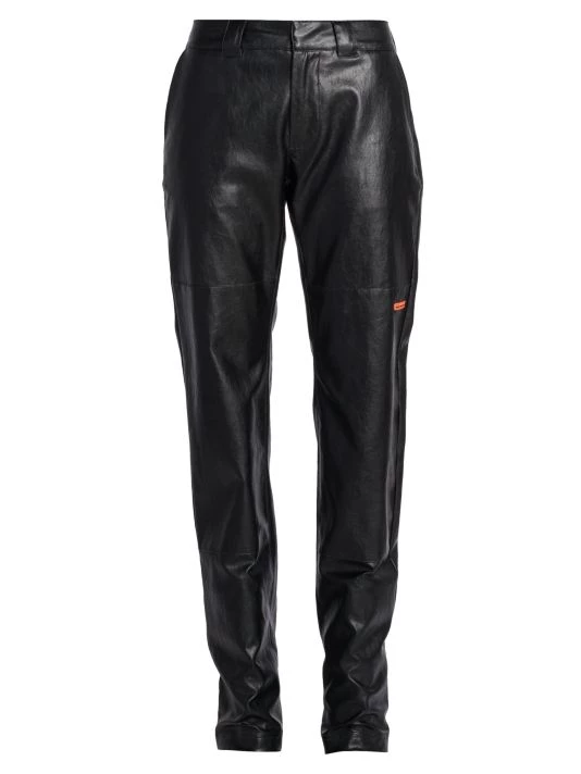 Crafted of faux leather, these Heron Preston chino pants are detailed with decorative stictching and a reflective patch detail.