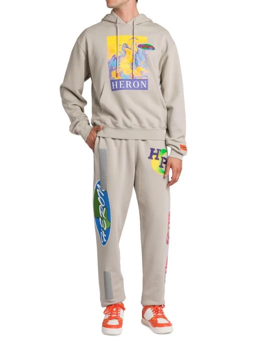 Bright logo graphics add vibrance to these printed sweatpants, designed with a loose fit through the leg.