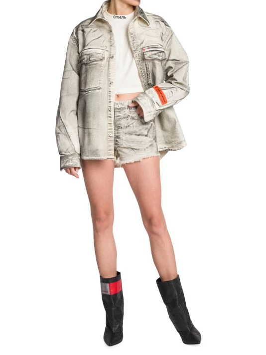 Crafted of denim, the Overdyed Spray shorts by Heron Preston are designed in a slim fit with raw hems.
