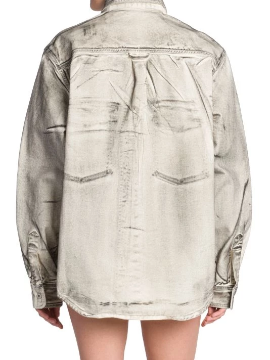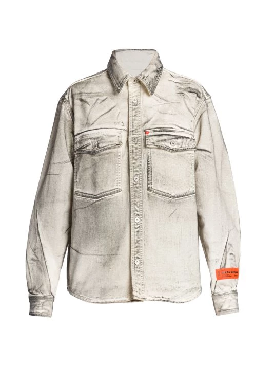 The Overdyed Spray shirt by Heron Preston is designed in an oversized silhouette with large flap pockets at the front chest.