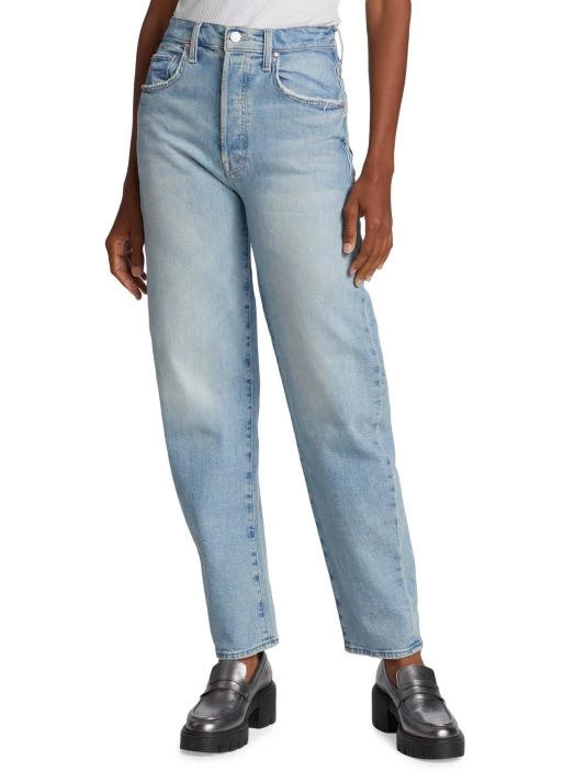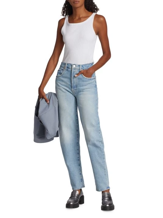 Mother’s Curbside Skimp jeans feature a mid-rise, straight-leg silhouette. A concealed button fly and soft fading at the thighs complete this soft, stretch-denim style.