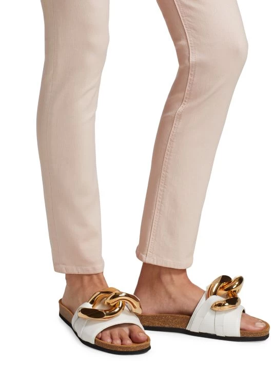 These chic straight-leg jeans are fitted with a mid-rise waist, showcasing a classic jean silhouette.