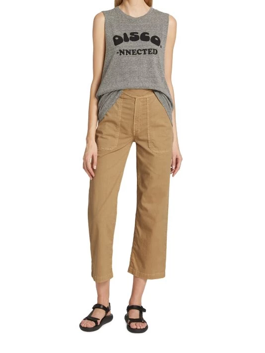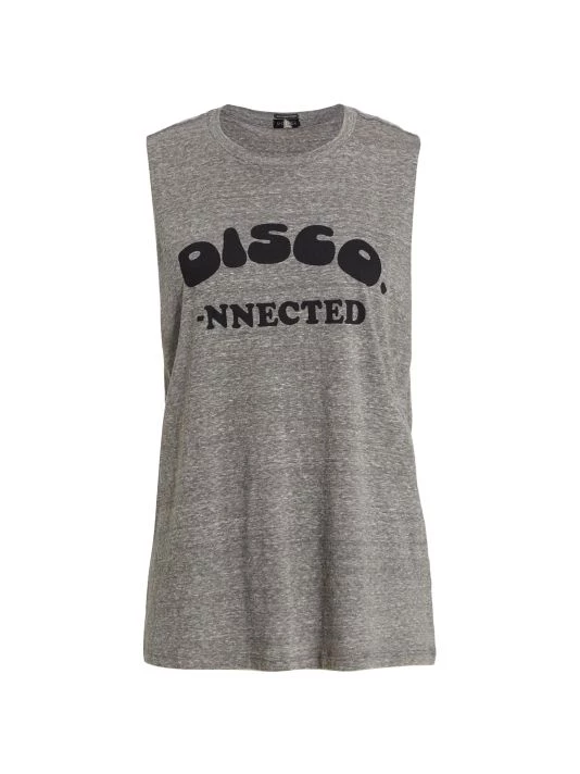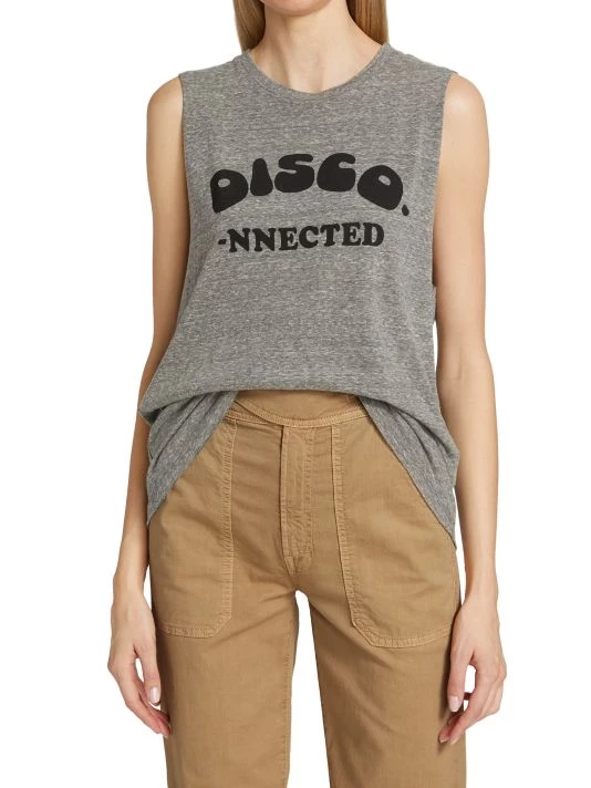 This sleeveless T-shirt by Mother is crafted of a stretch-jersey blend detailed with a quirky phrase graphic.