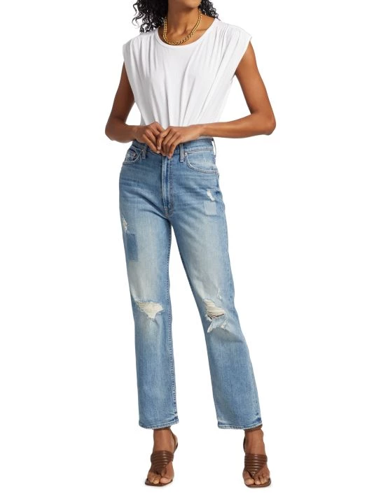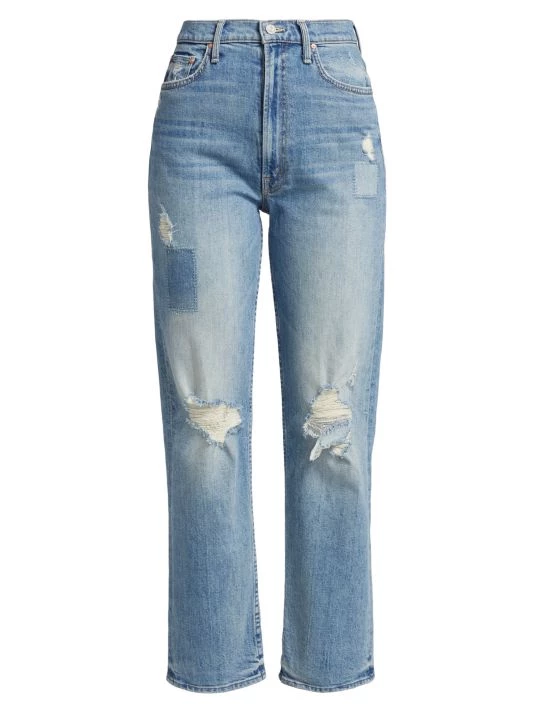 Crafted of stretch denim, the Study Hover jeans by Mother are designed in a high-waisted straight fit with distressing at the front.