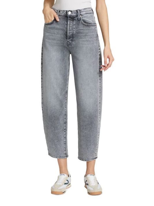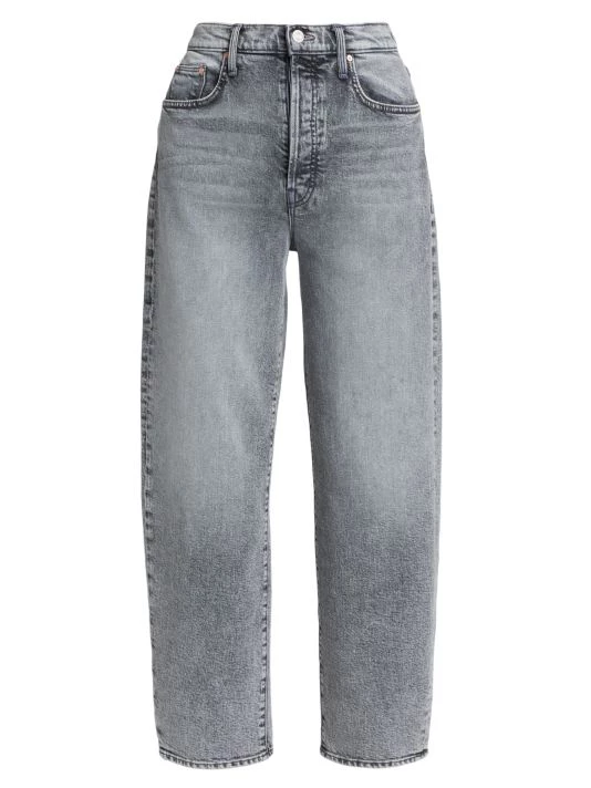 The Curbside ankle jeans from Mother feature a high-rise waist with a curved balloon leg that tapers at the ankle. Clean hems and signature topstitching at the back pockets finish this semi-rigid style.
