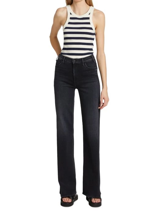 The Hustler Roller Heel jeans from Mother feature a ’70s-inspired high-rise, wide-leg silhouette. Clean hems and signature topstitching at the back pockets finish this light-stretch style.