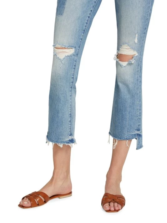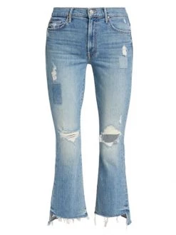 Mother’s Insider jeans are a cropped style with patchwork accents and a frayed hem.