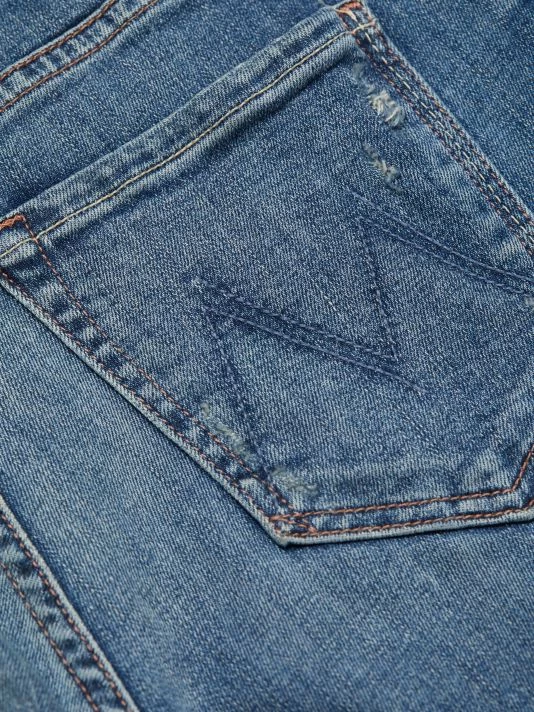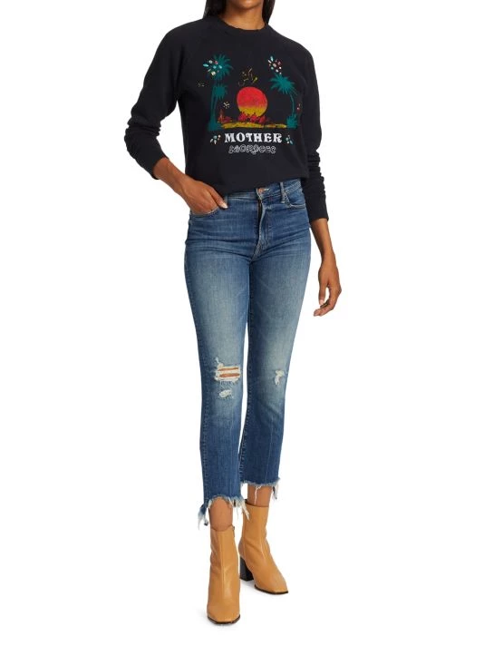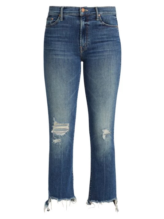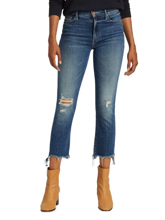 These eye-catching, distressed crop jeans feature a high rise and a frayed step hem. The back pockets show off slight distressing and signature arcuate stitching.