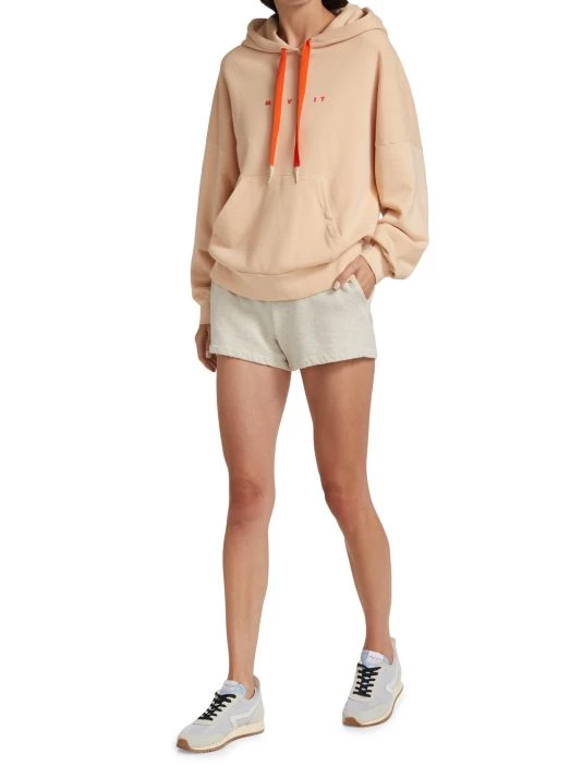 Sporty sweatshirts with a bright contrast drawstring and printed back graphic.