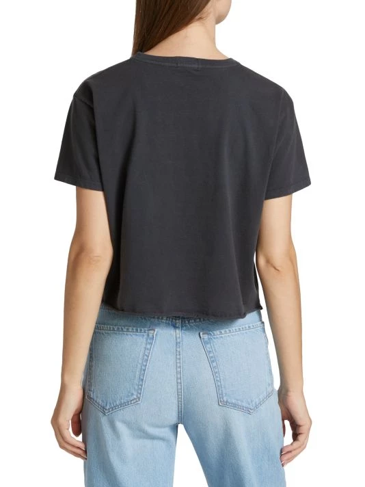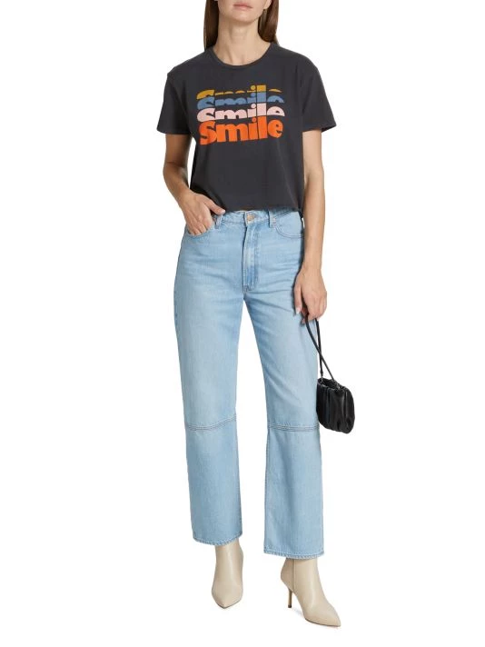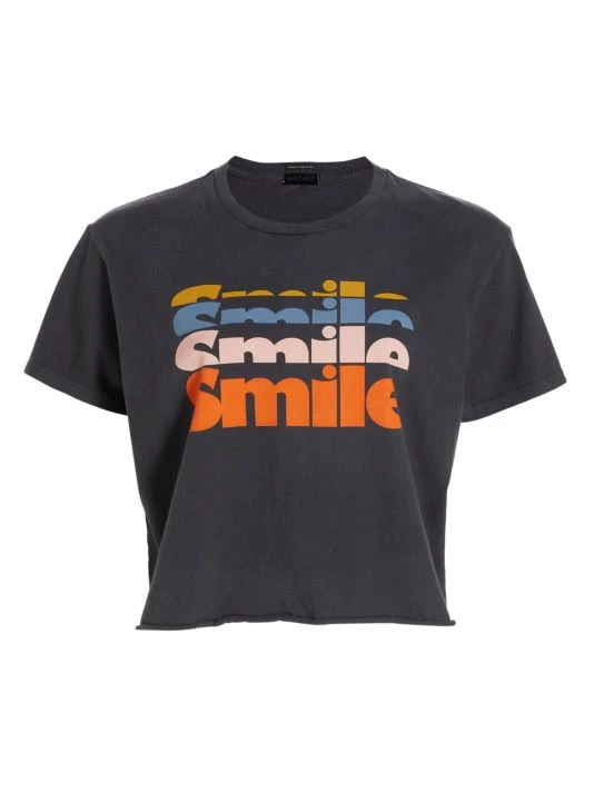 Printed with “Smile” lettering at the front, Mother’s The Rowdy Cutoff T-shirt is crafted of soft cotton jersey styled with a cropped raw hem.
