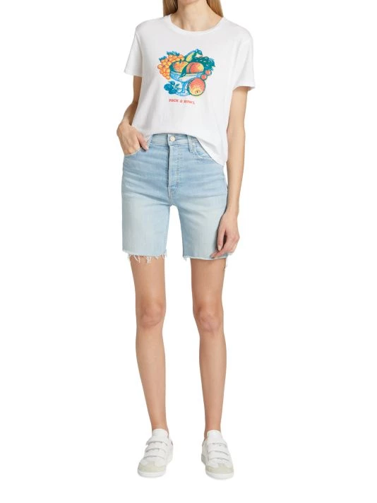Mother’s Rowdy Cutoff T-shirt is a cropped style adorned with a fruit bowl graphic.