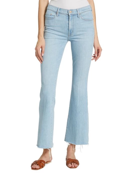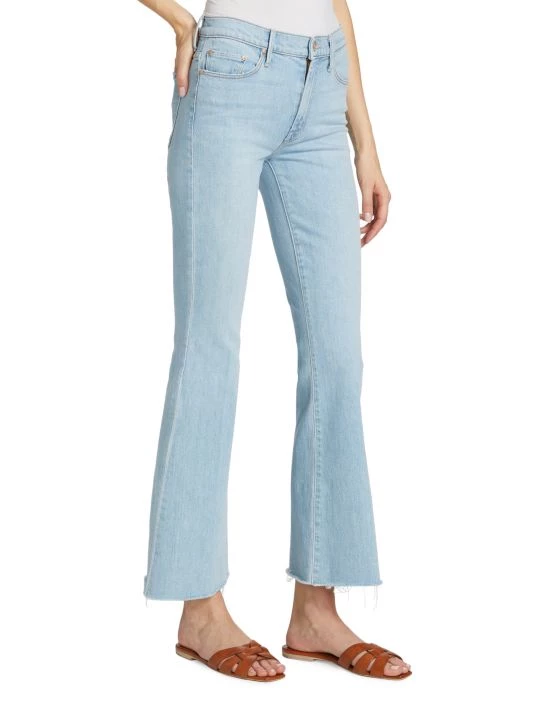 The Weekender crop jeans by Mother are cut from stretch denim, featuring a mid-rise waist, flared legs, and frayed hems.