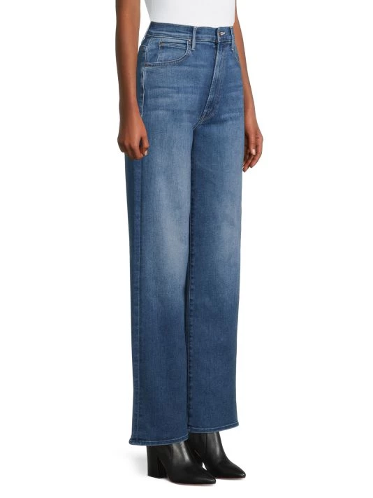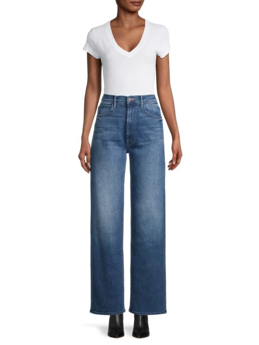 Mother’s Tunnel Sneak jeans are cut with a high rise and wide legs. Made of comfortable stretch denim, these loose-fit jeans are distressed with subtle whiskering and stress fading.