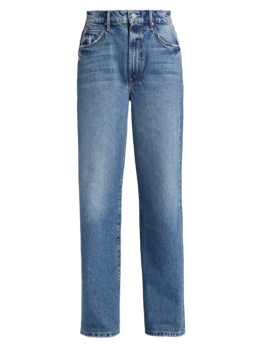 Straight-leg jeans with a flattering high waist, enhanced with whiskering and fade detailing.