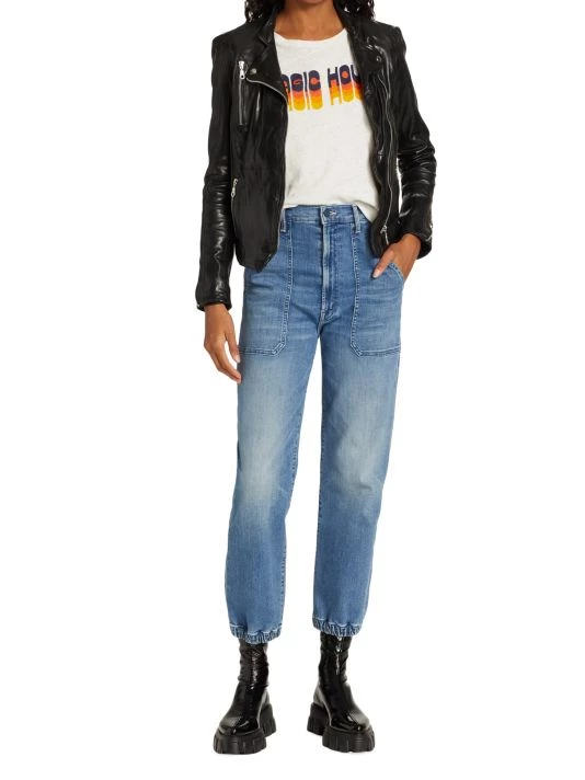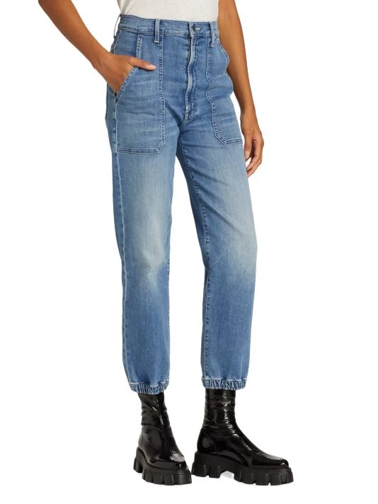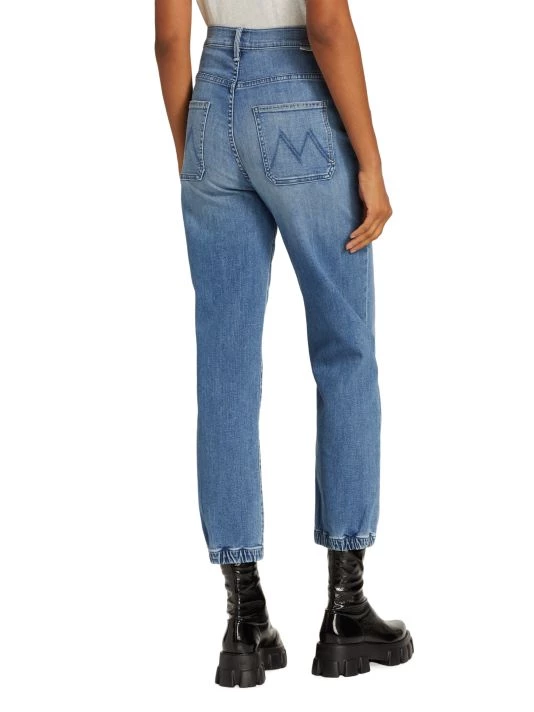 The Wrapper Patch Springy ankle jeans by Mother are cut from stretch denim, featuring an ultra high-rise waist and tapered legs with elasticized cuffs.