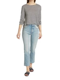 Mother The Weekender Fray Mid-Rise Distressed Stretch Flare Jeans